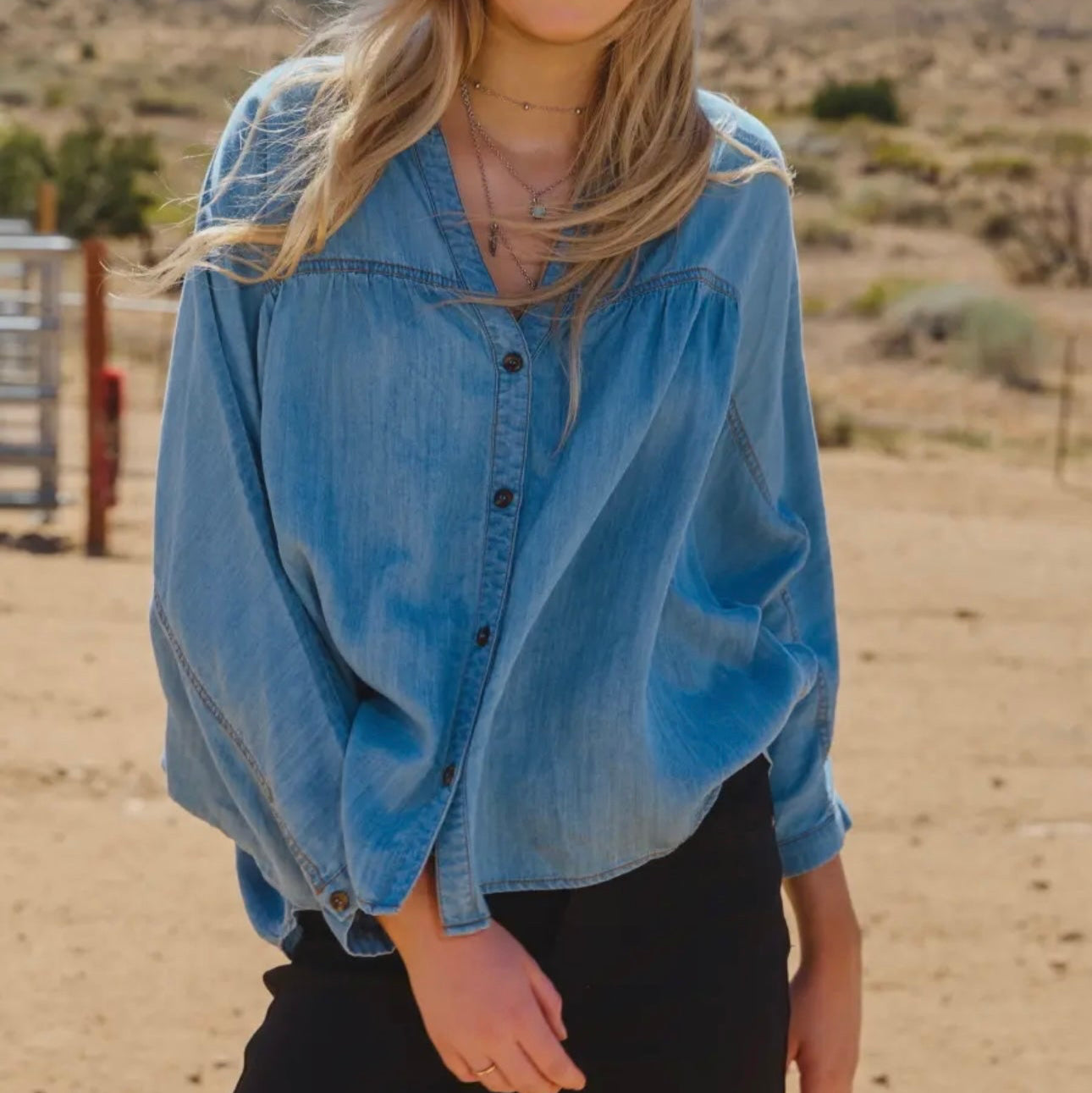 Chambray Denim Button Down Shirt